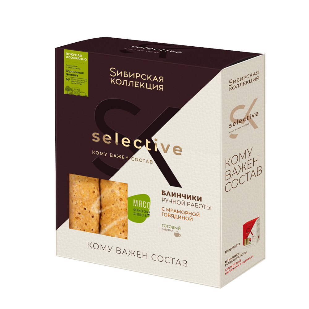 Сочные блинчики, начиненные нежной мраморной говядиной, приготовлены по традиционному русскому рецепту. Идеально подходят для закуски или в качестве основного блюда.