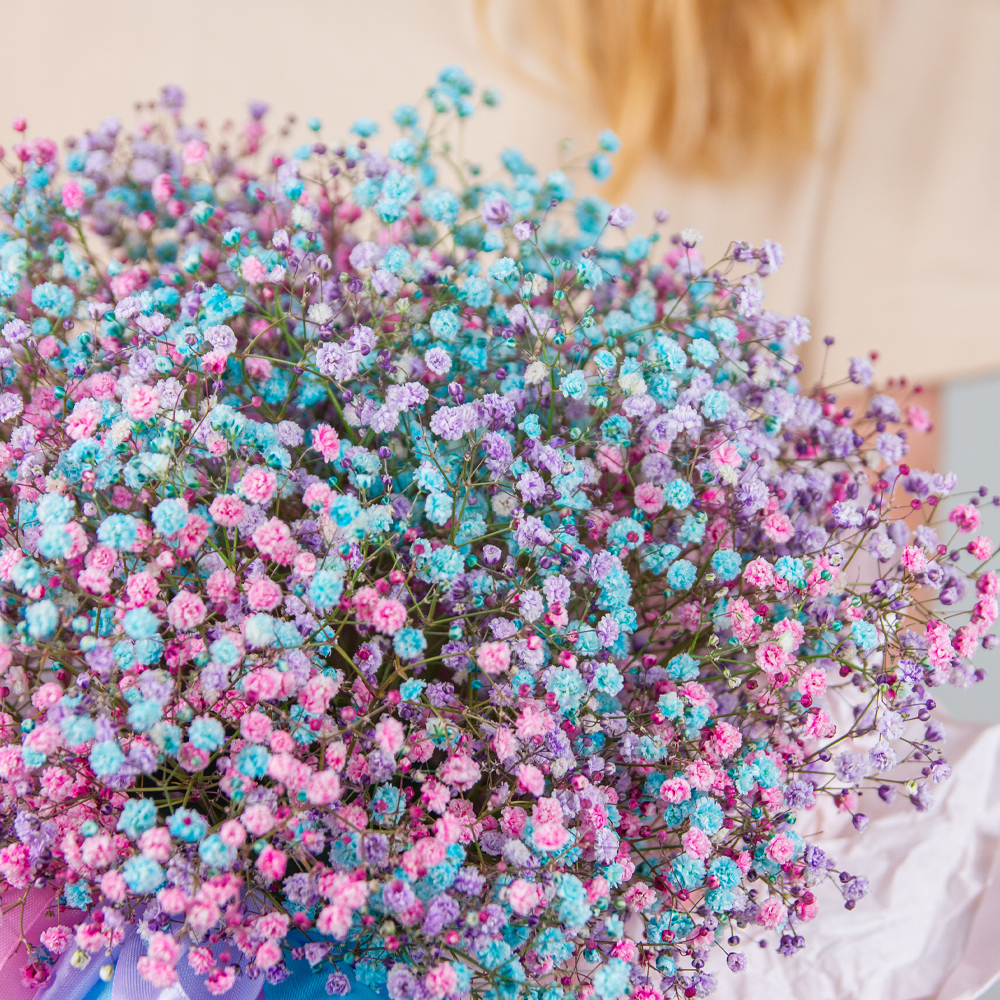 Гипсофилы принято дарить на рождение ребенка, свадьбу, новоселье, а также венчание или крещение. Такую чудесную розово-голубую коробочку идеально презентовать на выписку двойни или гендер-пати. Гипсофилы можно засушить, чтобы осталась память об этом замечательном событии.