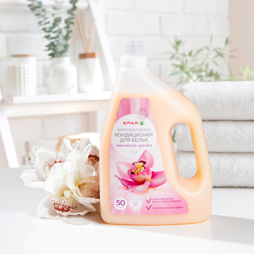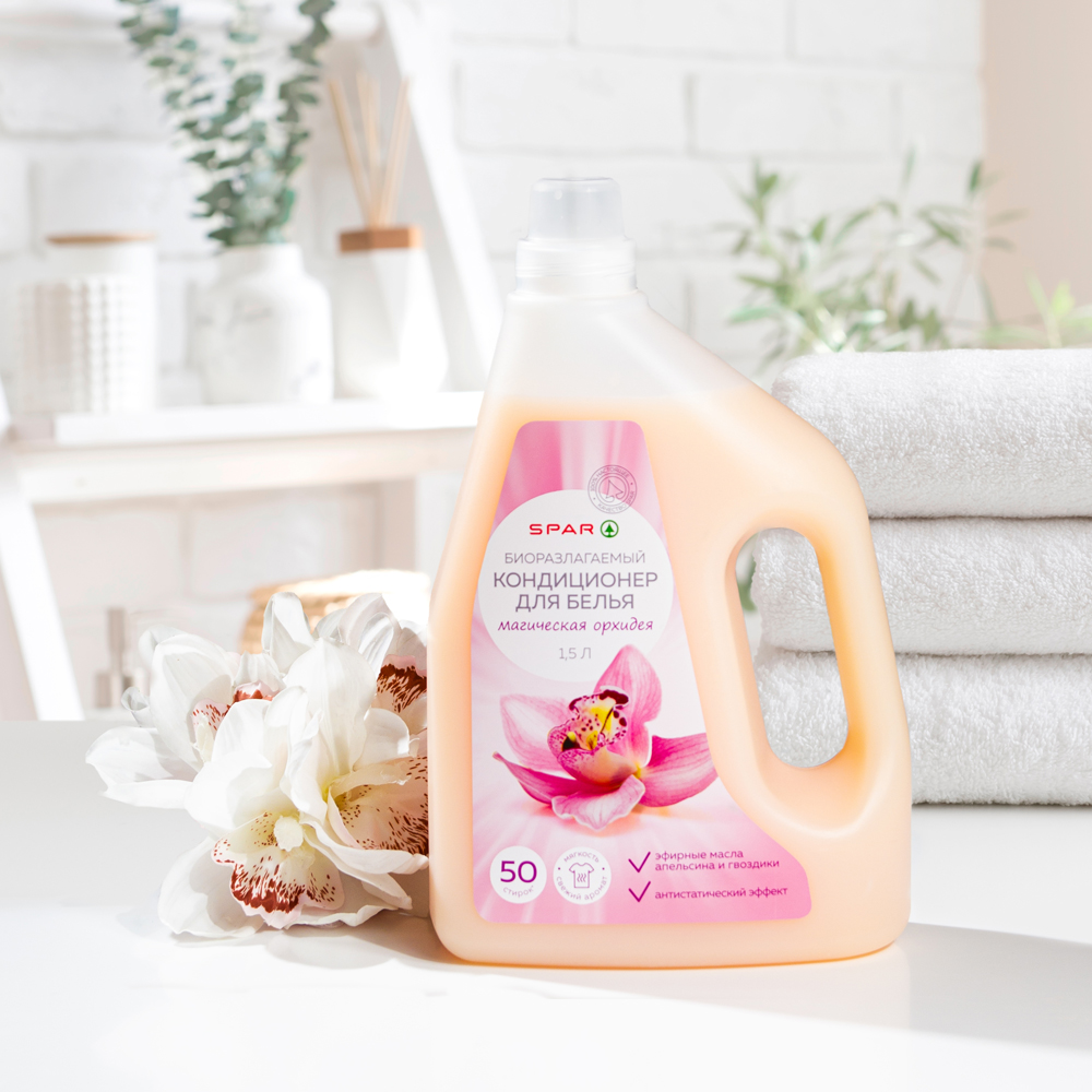 Кондиционер для белья SPAR подарит вашим вещам легкий, ненавязчивый аромат. Почувствуйте прикосновение нежности, кондиционер сделает ткань мягкой, приятной к телу, его нотки останутся на одежде надолго. Попробуйте и влюбитесь! Яркий аромат орхидеи придется по душе любителям цветочных запахов.