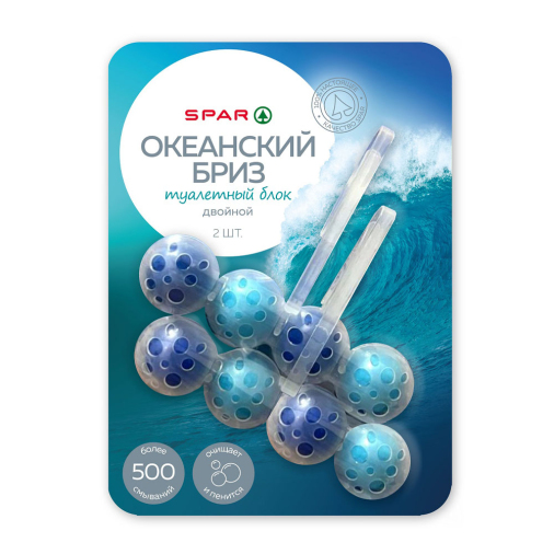Туалетный блок SPAR «Океанский бриз» обеспечивает чистоту и блеск поверхности унитаза. Обладает стойким минеральным ароматом, который эффективно блокирует неприятные запахи, и обильной пеной, устраняющей загрязнения, налёт, а также микробы и бактерии.