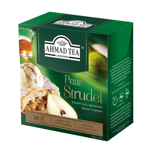 Черный чай с ароматом груши и корицы. Грушевый Штрудель от Ahmad Tea - купаж цейлонского чая и чая Ассам, все тонкости вкуса которых раскрываются благодаря пряной нотке корицы и кусочкам ароматной груши. Вкус одного из самых первых европейских десертов, который порадует всех любителей выпечки и создаст атмосферу для уютного чаепития.