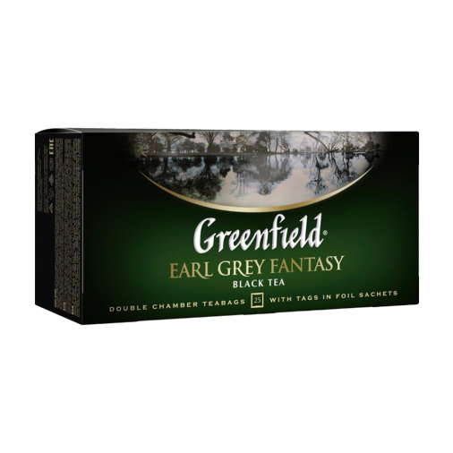 Чай черный байховый с ароматом бергамота и растительными компонентами в пакетиках для разовой заварки.