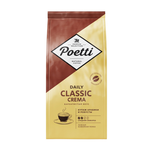 Кофе в зёрнах Poetti Daily Classic Crema 250г — выбор для ценителей насыщенного вкуса и аромата. Идеально подходит для приготовления в кофемашине или кофеварке. Насладитесь мягкой кремой и богатым вкусом каждое утро. Отличный старт дня с чашечкой свежесваренного кофе.