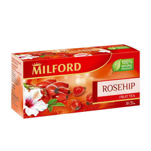Фруктовый чай MILFORD Шиповник - это освежающая композиция из шиповника и гибискуса. Плоды шиповника издавна ценятся за высокое содержание витамина С и приятный кисловатый вкус. Употребление шиповника усиливает иммунитет, улучшает обмен веществ. Это очень полезный, тонизирующий и вкусный напиток. Чай Milford не содержит ароматизаторы и красители. Обладает прекрасными вкусовыми качествами в горячем и холодном виде. Не содержит кофеин.