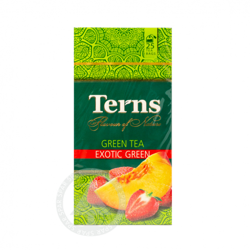 Зеленый чай Terns Exotic Green — идеальный выбор для ценителей нежного и ароматного напитка. В упаковке 25 пакетиков. Этот чай прекрасно подходит для утреннего чаепития и освежающего перекуса в течение дня. Насладитесь его тонким вкусом и свежестью в любое время.