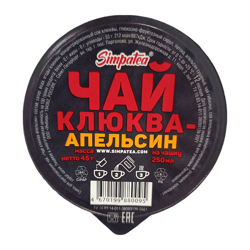Смесь для приготовления чая Simpatea клюква апельсин — идеальный выбор для тёплого напитка. Она подарит вам яркий и насыщенный вкус. Подходит для использования в любое время суток. Отлично сочетается с десертами и фруктами. Прекрасный способ быстро насладиться ароматным чаем и поднять настроение.