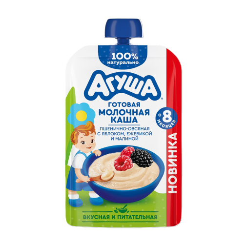 Идеальна для детского завтрака или полдника — каша Агуша молочная пшенично-овсяная с яблоком, ежевикой и малиной. Она поможет разнообразить рацион малыша и наполнить его день витаминами. Удобный формат упаковки позволит взять кашу с собой в дорогу или на прогулку.