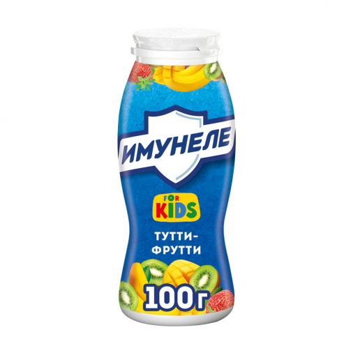Молоко цельное, молоко обезжиренное, фруктовый наполнитель тутти-фрутти (сахар, вода, глюкозно-фруктозный сироп, сок яблочный концентрированный, сок мультифруктовый концентрированный, сок клубничный концентрированный, ароматизатор натуральный - тутти-фрутти, загуститель - пектин, регулятор кислотности - цитрат натрия, лимонная кислота), витаминный премикс, закваска, пробиотические культуры (Lactobacillus Casei, Lactobacillus Rhamnosus).