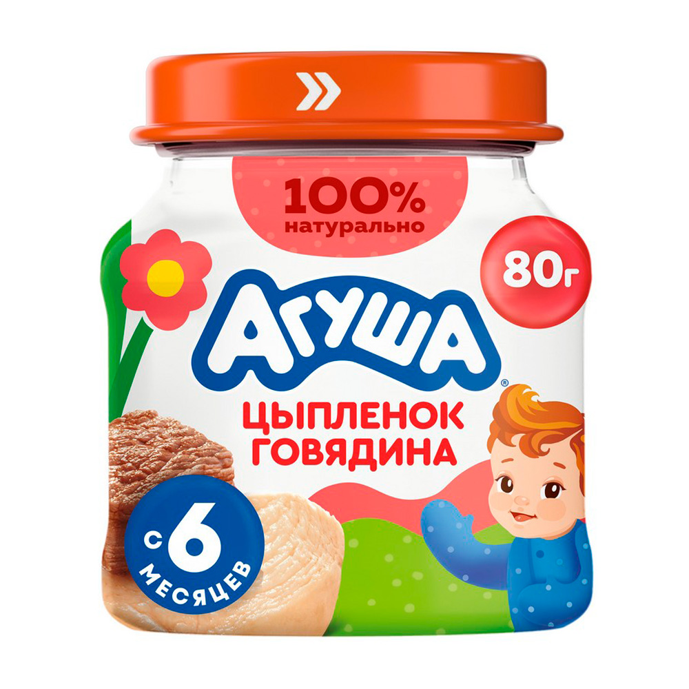 Для прикорма малышей подойдёт пюре Агуша с нежным вкусом цыплёнка и говядины. Оно поможет разнообразить рацион ребёнка и познакомить его с новыми вкусами. Идеальное решение для комфортного перехода на твёрдую пищу. Удобная стеклянная упаковка объёмом 80г обеспечивает лёгкость хранения и использования.