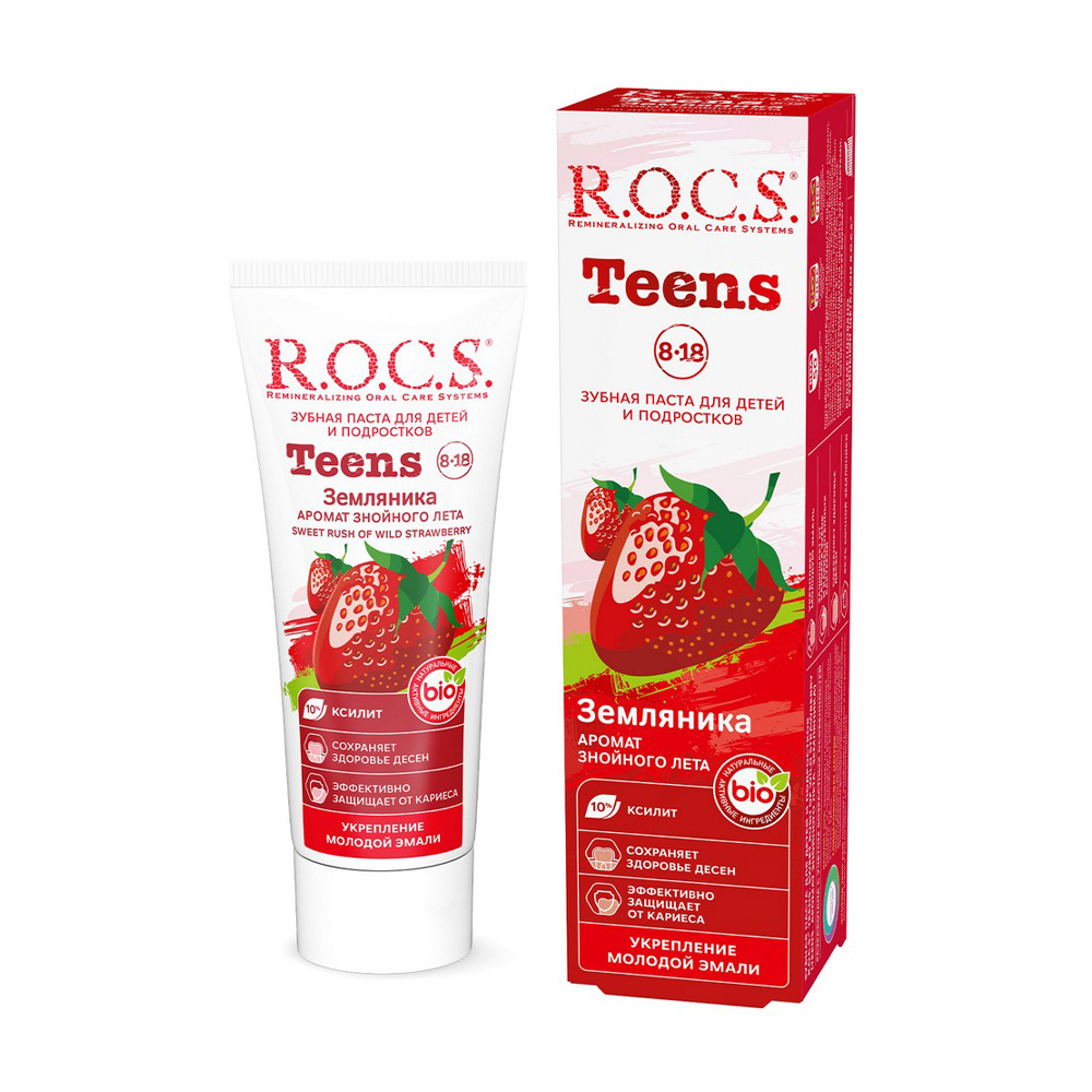 Для детей от 8 до 15 лет создана зубная паста с ярким вкусом земляники, которая превратит ежедневную рутину в приятное занятие. Паста R.O.C.S. Teens помогает поддерживать здоровье зубов и десен, способствует укреплению эмали и обеспечивает свежее дыхание. Подходит для регулярного использования.