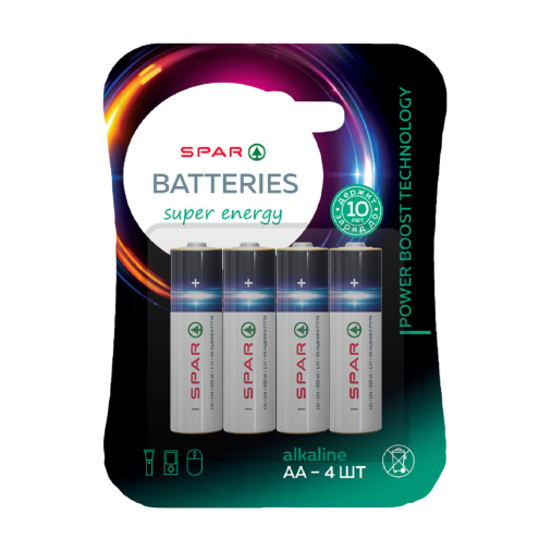 Батарейки SPAR типа АА в количестве 4 штук — это надёжный и качественный источник питания для различных устройств: пультов, игрушек, фонариков. Они обеспечивают стабильную работу и подходят для повседневного использования.