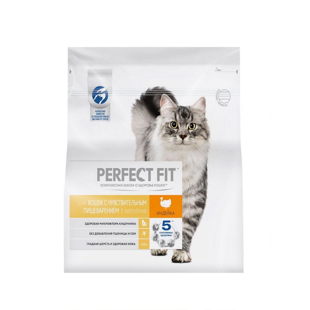 Для поддержания здоровья и активности вашей кошки создан сухой корм с индейкой. Он подойдёт в качестве основного блюда для ежедневного кормления. Корм Perfect Fit поможет обеспечить вашего питомца необходимым количеством питательных веществ. Удобная упаковка 1,2кг подойдёт как для постоянного кормления, так и для пробного знакомства с кормом.