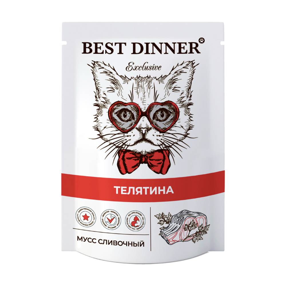 Ищете вкусное и полезное блюдо для вашего пушистого друга? Попробуйте мусс от Best Dinner! Нежный мусс с телятиной — это идеальный выбор для кошек, которые ценят изысканный вкус и мягкую консистенцию. Удобная упаковка паучи позволит легко угостить питомца в любое время.