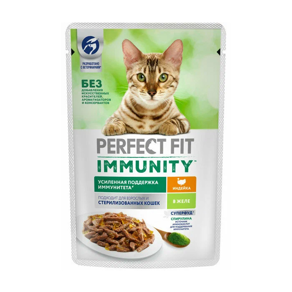 Perfect Fit Immunity — это влажный корм с индейкой, созданный специально для поддержания иммунной системы вашей кошки. Он помогает заботиться о здоровье питомца и разнообразит его рацион. Подходит как дополнительное питание или как основной рацион.