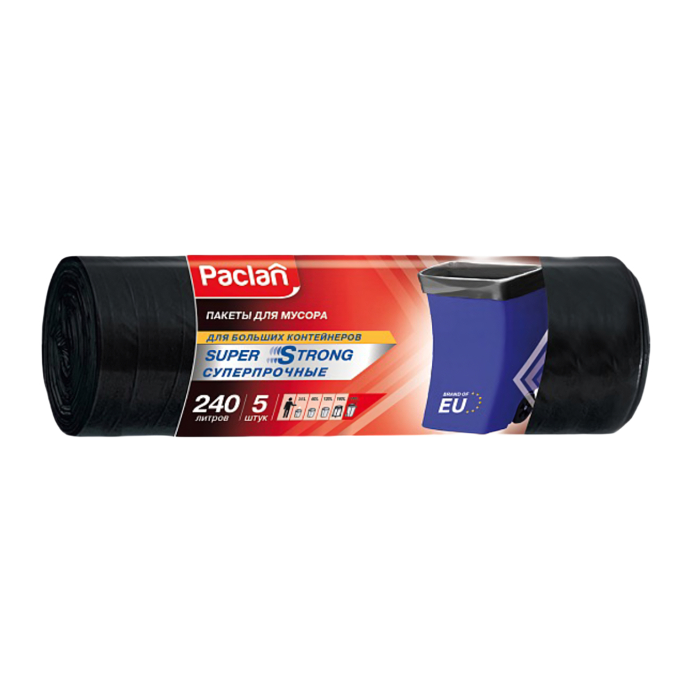Мешки для мусора Paclan Super Strong — надёжное решение для вашего дома. Объём каждого мешка — 240 литров, в упаковке 5 штук. Они подходят для сбора и утилизации различных видов мусора. Прочные и вместительные, идеально подходят для уборки дома, сада или офиса. С этими мешками ваш дом всегда будет чистым и опрятным.