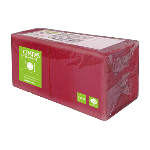 Ищете надёжные и стильные бумажные салфетки? Красные салфетки Gratias размером 24х24см идеально подойдут для сервировки стола и добавления ярких акцентов в интерьер. Двухслойная структура обеспечивает прочность и впитываемость, а упаковка на 250 листов гарантирует длительное использование.