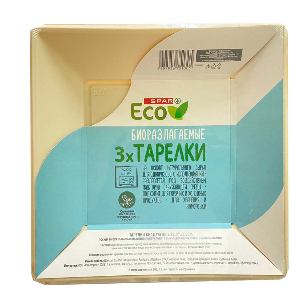 SPAR заботится о планете и предлагает вам приобрести Eco посуду, которая выполнена из натуральных материалов, поверженных разложению под воздействием факторов окружающей среды. Три стильные квадратные тарелки подойдут для небольшой компании или семьи.