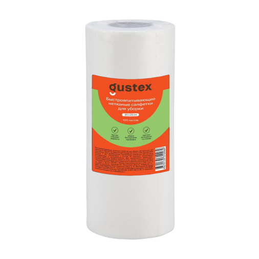 Быстровпитывающие салфетки Gustex размером 20х23см — незаменимый помощник на кухне. Они отлично впитывают влагу и подходят для различных бытовых задач. Салфетки пригодятся при приготовлении и сервировке блюд, уборке свежих загрязнений. В упаковке 100 листов — хватит надолго!