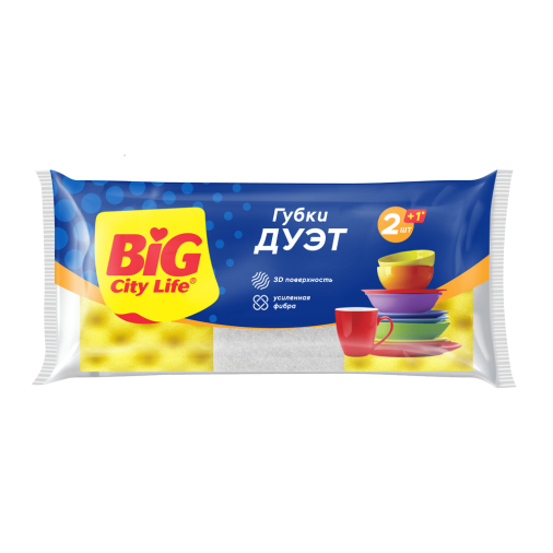 Губки Big City Life Дуэт предназначены для мытья посуды и различных поверхностей на кухне и в ванной. Они отлично справляются с жиром и загрязнениями, не повреждая даже деликатные покрытия. В упаковке три губки — две большие и одна маленькая, что позволяет использовать их для разных целей.