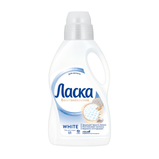 Жидкий порошок Ласка Восстановление белого эффективно и бережно отстирывает загрязнения на одежде и белье. Формула содержит специальный оптический отбеливатель, благодаря чему средство восстанавливает и сохраняет белизну вещей, предотвращая появление серого оттенка. Активные компоненты способствуют уменьшению количества катышков на ткани и сохраняют прочность волокон.