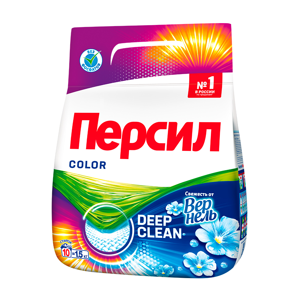 Стиральный порошок Персил Color Свежесть от Вернель предназначен для цветного белья и обеспечивает высокую эффективность стирки благодаря формуле Deep Clean Plus с уникальным сочетанием 13 активных компонентов.