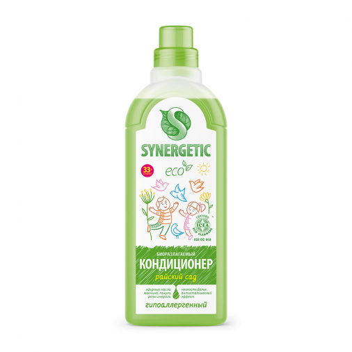 Кондиционер для белья Synergetic райский сад объёмом 1 литр делает одежду более мягкой и придаёт ей приятный аромат. Подходит для всех типов тканей. Идеален для стирки повседневной одежды, постельного белья и полотенец. Легко выполаскивается, не оставляет следов. Обеспечивает длительное сохранение свежести вещей.