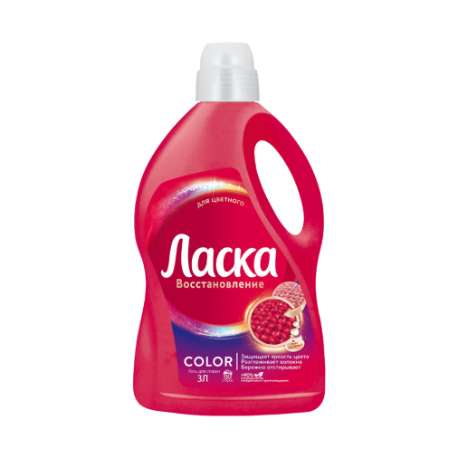 Гель для стирки Ласка Эффект Восстановления для Цветного 3 л, 50 стирок предназначен для ухода одеждой ярких цветов и поддержания первозданной красоты вещей. Специальная формула Fibrex-tech жидкого средства для стирки Ласка отстирывает загрязнения и сохраняет форму ткани. Гель для стирки деликатно и качественно отстирывает вещи, подчеркивает яркость цвета, препятствуя переносу красителя во время стирки.