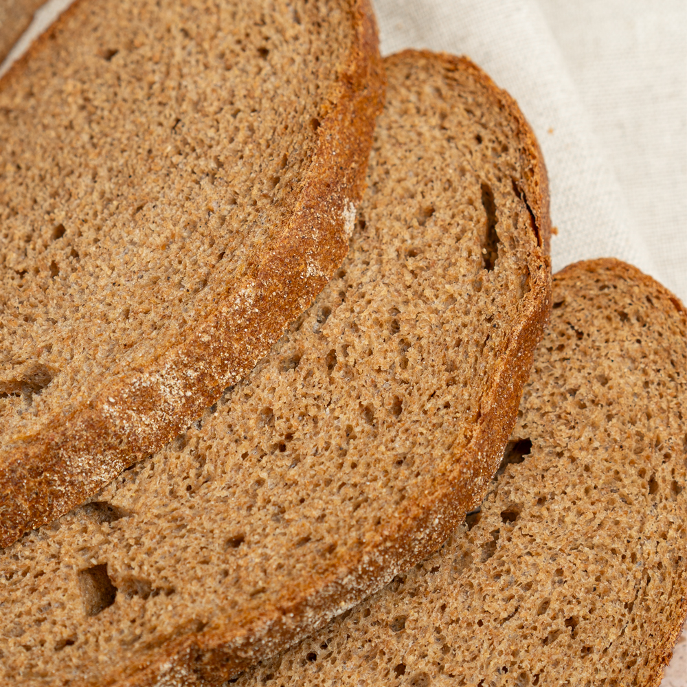 Ржаной отрубной хлеб отличается пышным, пористым мякишем и нежным, с выразительными оттенками солода вкусом. Прекрасный компаньон для диетических бутербродов за счет натуральных ингредиентов и особой ржаной закваски.
