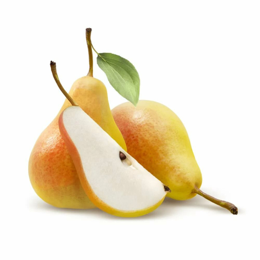 Тонкая кожица с легкой шероховатостью у этих груш окрашена в зеленовато-желтый цвет, может иметь на поверхности легкий румянец с солнечной стороны. Плоды продолговато-грушевидные, достигают массы в 200 г и более, считаются крупными. Мякоть тающая, сочная, имеет чистый белый или слегка кремовый оттенок.