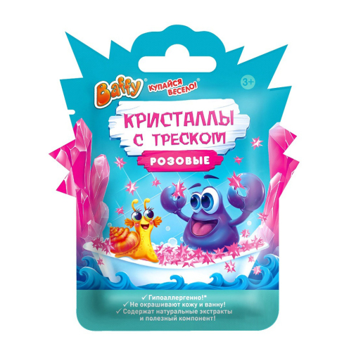 Кристаллы «Baffy» с треском – это необычное и весёлое развлечение для детей. Они имеют приятный розовый цвет, который понравится маленьким принцессам. Кристаллы подарят ощущение чуда и волшебства. Они станут прекрасным дополнением к водным процедурам, превращая это событие в незабываемое приключение.