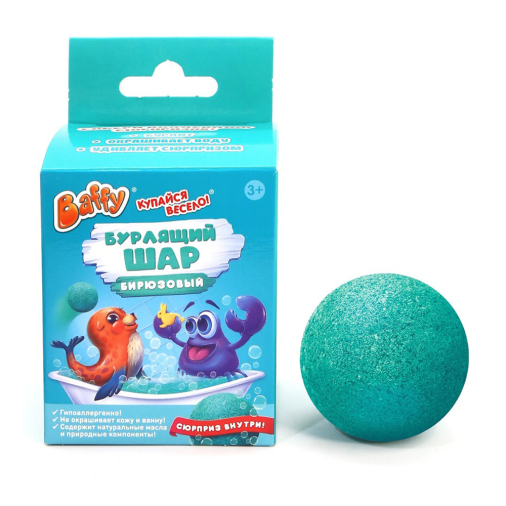 Бурлящий шар «Baffy» – это весёлое и яркое развлечение для детей. Он превратит купание в ванной в настоящее шоу с бурлящими пузырьками и приятным бирюзовым оттенком воды. Сюрприз внутри шара добавит радости. Подходит для создания атмосферы волшебства во время водных процедур.