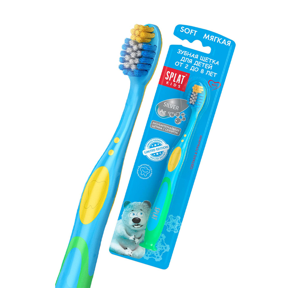 Для детей от 2 до 8 лет создана специальная зубная щётка Splat Kids. Она поможет приучить ребёнка к ежедневной гигиене и сделать процесс чистки зубов весёлым и увлекательным. Благодаря удобной форме и мягкой щетине, чистка зубов будет комфортной и безопасной.