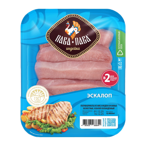 Эскалоп индейки Пава-Пава — отличный выбор для вкусного и здорового ужина. Удобно использовать для приготовления разнообразных блюд. Подходит для жарки на сковороде или гриле. Из этого продукта получаются сочные стейки и аппетитные блюда с овощами. Идеально для быстрого и сытного обеда или ужина.