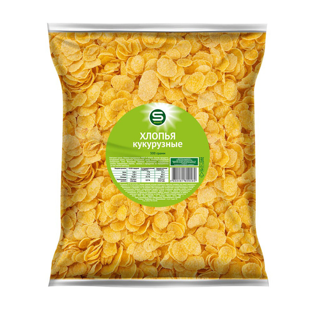 Кукурузная крупа, крахмал кукурузный, сахар, ячменно-cолодовый концентрат, соль, краситель бета-каротин.
