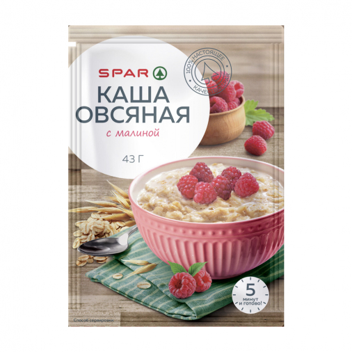 Настоящий прилив бодрости! Овсяная каша SPAR готовится всего пару минут, а заряжает энергией на целый день. Обладает нежным приятным вкусом с нотами сладкой садовой малины. Является источником ценных пищевых волокон.