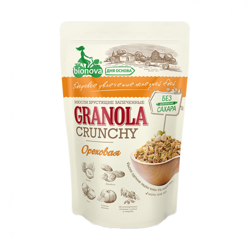 Запеченная ореховая гранола - ароматный, вкусный и полезный завтрак со злаками, фундуком, миндалем, кокосом и семенами тыквы. Запеченные злаки содержат клетчатку – растительное пищевое волокно, которое нормализует работу пищеварительной системы, а в сочетании с орехами и семенами благотворно влияет на мускулатуру сердца, стенки сосудов и стимулирует работу мозга. Готовы к употреблению. По желанию можно добавить молоко, йогурт или сок.