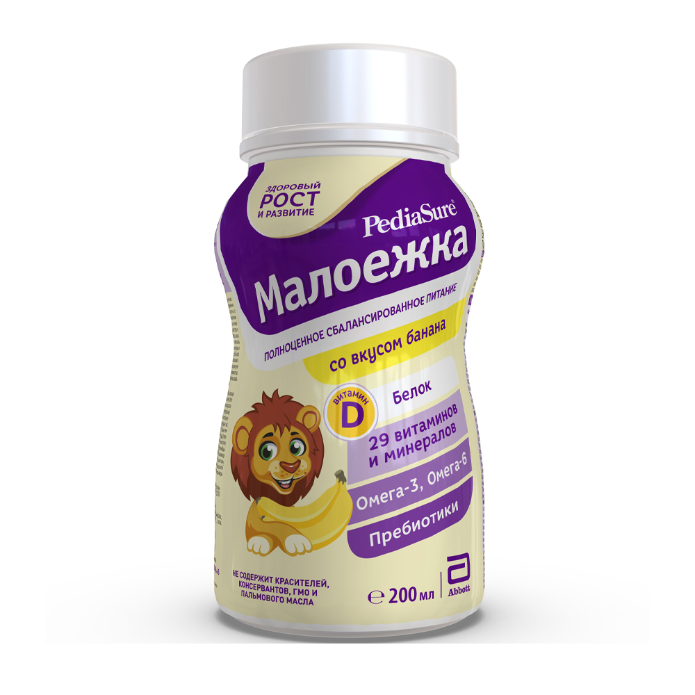 Вода, мальтодекстрин, сахароза, растительные масла (соевое масло, высокоолеиновое подсолнечное масло, масло со среднецепочечными триглицеридами (СЦТ)), концентрат молочного белка, фруктоолигосахариды (ФОС), минералы (калия хлорид, калия гидрофосфат, натрия цитрат, трикальция фосфат, магния гидроортофосфат, железа сульфат, цинка сульфат, калия цитрат, марганца сульфат, меди сульфат, калия йодид, натрия молибдат, хрома хлорид, натрия селенат), изолят соевого белка, белок гороха, ароматизаторы (натуральный и ванилин), эмульгаторы (моно- и диглицериды жирных кислот, соевый лецитин), холина битартрат, стабилизатор (ксантановая камедь), витамины (аскорбиновая кислота, ниацинамид, витамин Е, кальция пантотенат, тиамина гидрохлорид, рибофлавин, пиридоксина гидрохлорид, витамина А пальмитат, фолиевая кислота, биотин, филлохинон, витамин D3, цианокобаламин), мио-инозитол, таурин, докозагексаеновая кислота (DHA) из масла C.cohnii, арахидоновая кислота (АA) из масла M.alpina