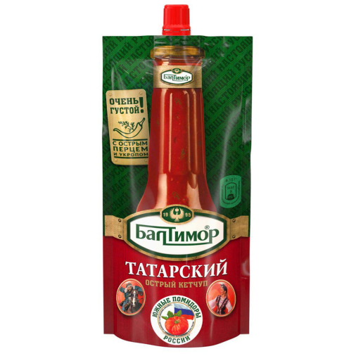 Вода, томатная паста, сироп глюкозно-фруктозный, уксус столовый, загуститель Е1442 крахмал, соль, укроп, кориандр, перец чили, сок лимонный концентрированный.