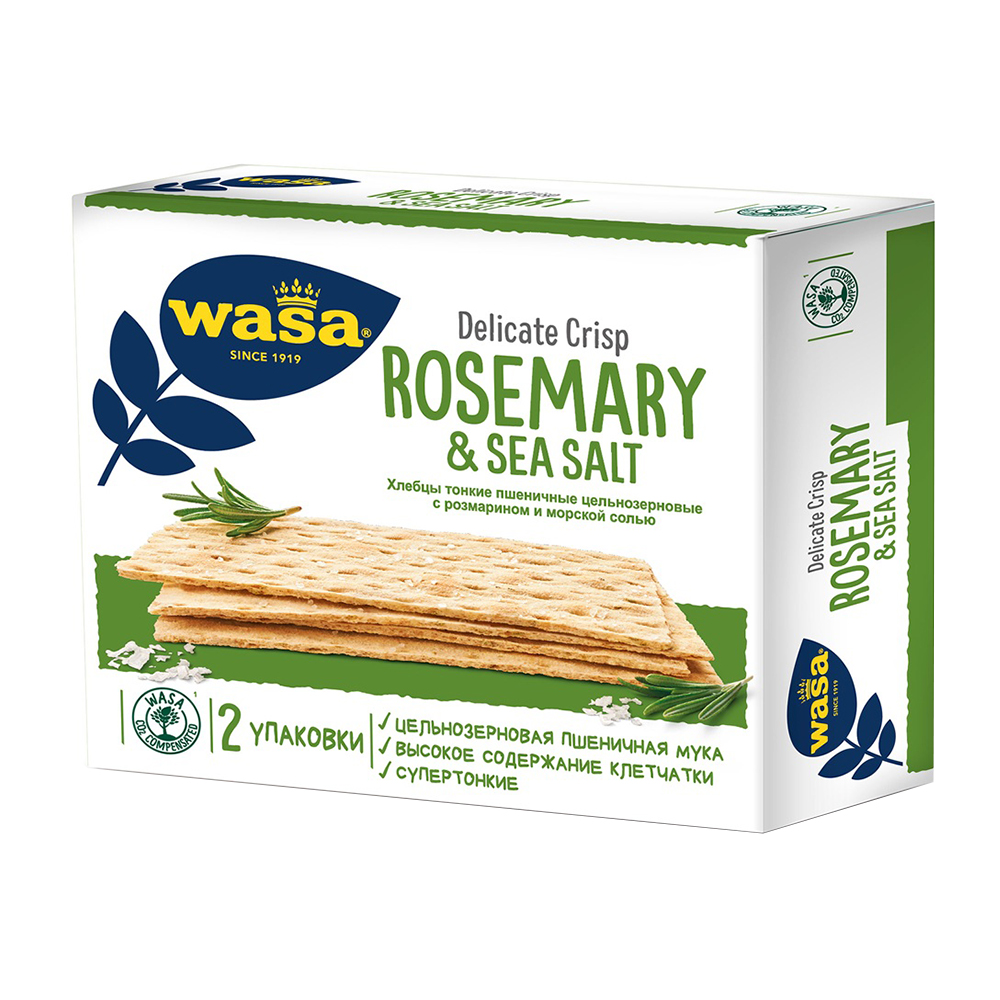 Хлебцы Wasa пшеничные с розмарином и морской солью — идеальный выбор для быстрого и вкусного перекуса. Они отлично подойдут для тех, кто ценит натуральность и насыщенный вкус. Хрустящие хлебцы прекрасно сочетаются с овощами, сыром и оливковым маслом. Их удобно брать с собой в дорогу или на работу.