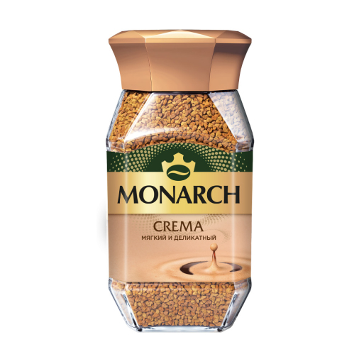 Monarch Crema — это растворимый кофе, который подарит вам насыщенный аромат и нежный вкус с кремовой пенкой. Идеален для приготовления бодрящего утреннего напитка, а также может быть основой для кофейных десертов или соусов. Прекрасно подходит для тех, кто ценит качество и стремится к разнообразию в ежедневном потреблении кофе.