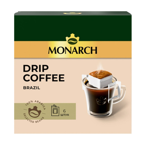 Для любителей насыщенного вкуса и аромата предлагаем попробовать молотый кофе Monarch Brazil в дрип-пакетах. Удобная упаковка позволяет насладиться чашечкой ароматного напитка в любом месте и в любое время. Идеально подходит для быстрого и качественного приготовления кофе дома или в офисе.