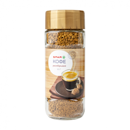 Утро в удовольствие! Растворимый кофе SPAR обладает насыщенным вкусом. Во время приготовления он приобретает красивую золотую пенку и источает яркий кофейный аромат. Идеально с молоком и сливками.
