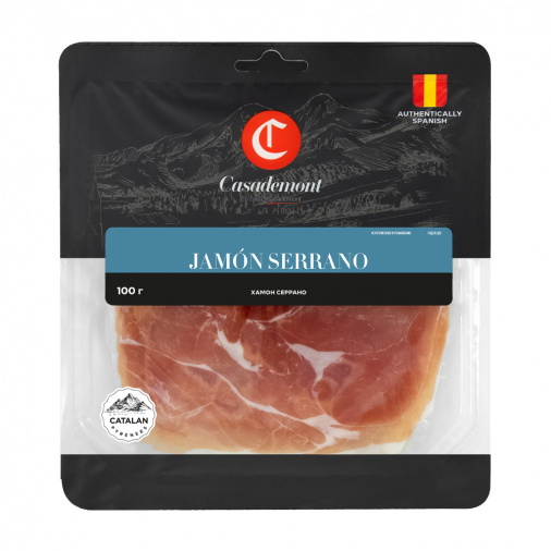 Хамон серрано от Casademont — это сыровяленый деликатес с насыщенным вкусом, который станет изысканным украшением вашей мясной тарелки. Отлично подойдёт для создания закусок к пиву или вину, а также в качестве ингредиента для различных блюд средиземноморской кухни.
