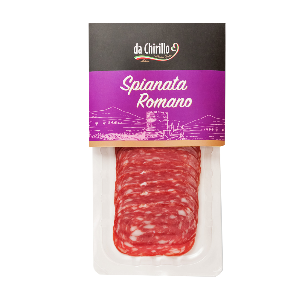 Сыровяленая колбаса Spianata Romano от Da Chirillo — для ценителей изысканных вкусов. Нарезка весом 90г идеально подходит для создания аппетитных закусок. Её можно использовать для приготовления пикантных бутербродов или добавлять в салаты для необычного вкуса. Отличный выбор для праздничного стола или уютного вечера.
