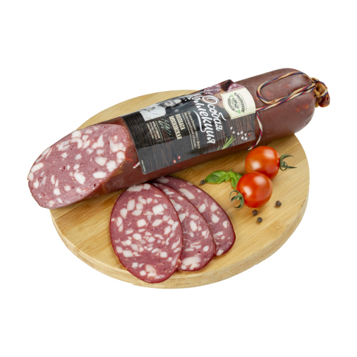 Та самая, любимая многими, настоящая «Московская» колбаса с лёгким ароматом дымка! Мы бережно отнеслись к её приготовлению, придерживались строгой рецептуры, поэтому в составе исключительно отборное натуральное мясо с ферм экологически чистого района Нижегородский области. Именно фермерское мясо, немного специй и сочный шпик делают вкус колбасы идеальным, а консистенцию – безупречной.