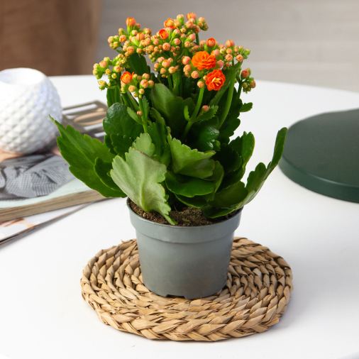 Каланхоэ — суккулентная многолетняя культура, которая сохраняет свою зеленую окраску на протяжении всего года. Отличается плотными зелеными листьями с зубчатыми краями. Цветет каланхоэ невзрачными цветками, который имеют зеленоватый цвет с легким розовым отливом.