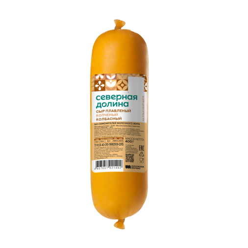 Колбасный сыр Северная долина с ароматом копчения обладает насыщенным вкусом и упругой текстурой. Отлично подойдёт как для холодных закусок, так и для горячих блюд. Прекрасно плавится и добавляет пикантные нотки в любое кулинарное творение.