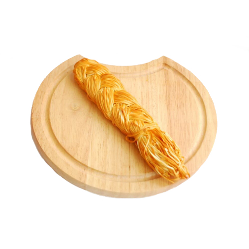 Это рассольный сыр с нежным, умеренно соленым вкусом и волокнистой текстурой. Сплетение сырных нитей в косу не только придает продукту оригинальный вид, но и делает его удобным для перекуса. Он станет отличным дополнением к пивной тарелке или пикнику на природе.