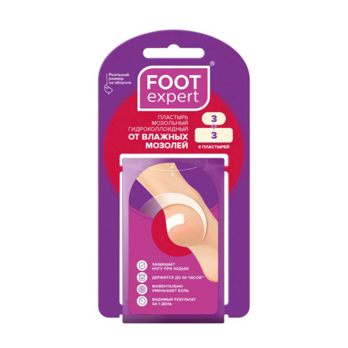 Мозольный пластырь Foot Expert предназначен для защиты кожи при натоптышах и мозолях. В упаковке вы найдёте пластыри двух размеров, по три штуки каждого: 2,9х6см и 2,2х4,1см. Они легко приклеиваются и надёжно фиксируются на коже, создавая комфортные условия для её заживления. Пластырь помогает предотвратить дальнейшее натирание и раздражение, обеспечивая защиту и уход за кожей стоп.