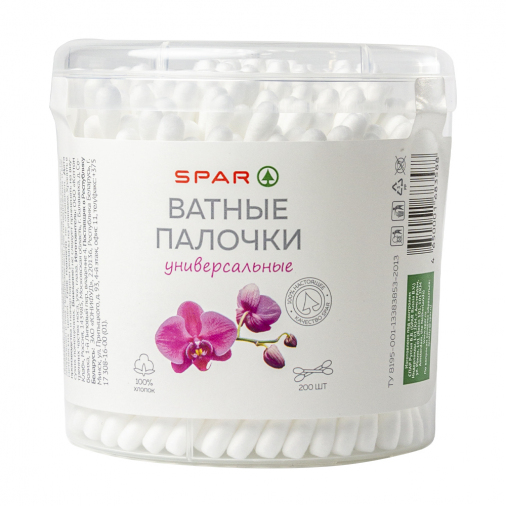 Ватные палочки SPAR отличаются качеством материала, из которого изготовлены. 100% хлопок и прочная палочка. Не травмируют кожу, деликатны в очищении.